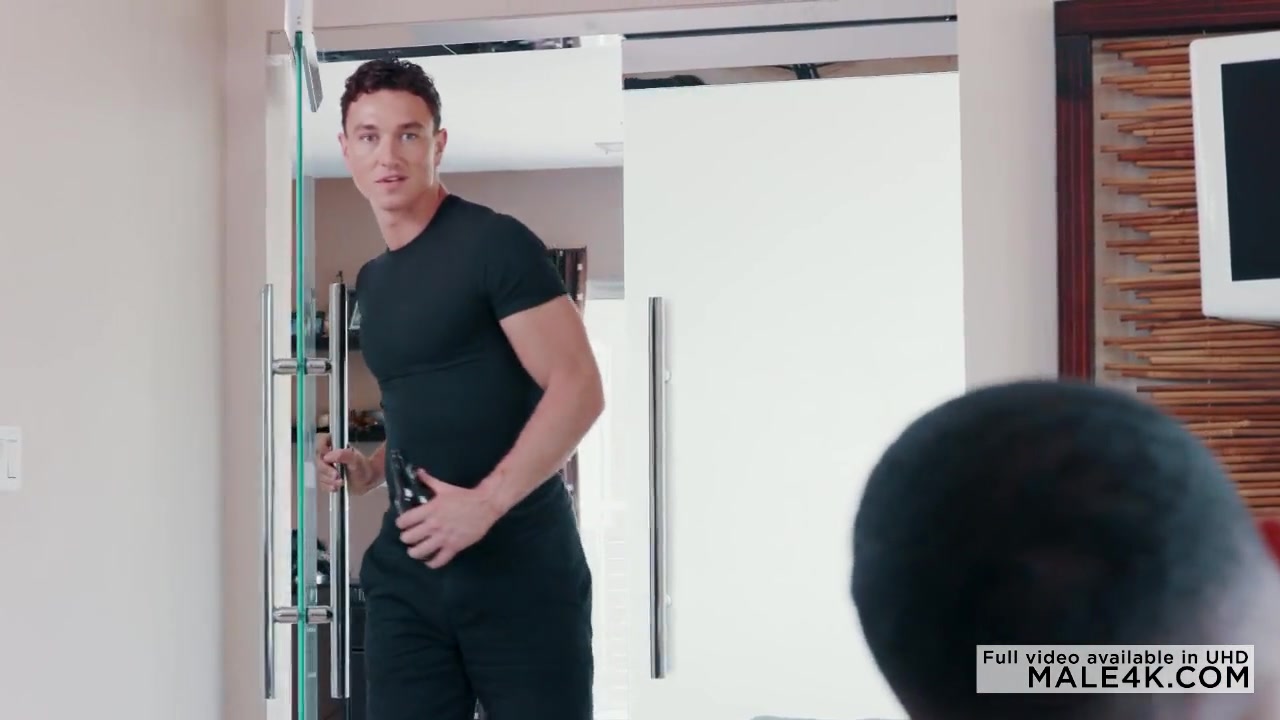Качок провел жену, усадил ее в машину и пошел домой, где его уже с членом наперевес дожидался негр, страшно желая быть оттраханным в задницу. Подкачанный пацан не стал томить своего товарища, пососал ему член и затем стал интенсивно жарить его в очко.
