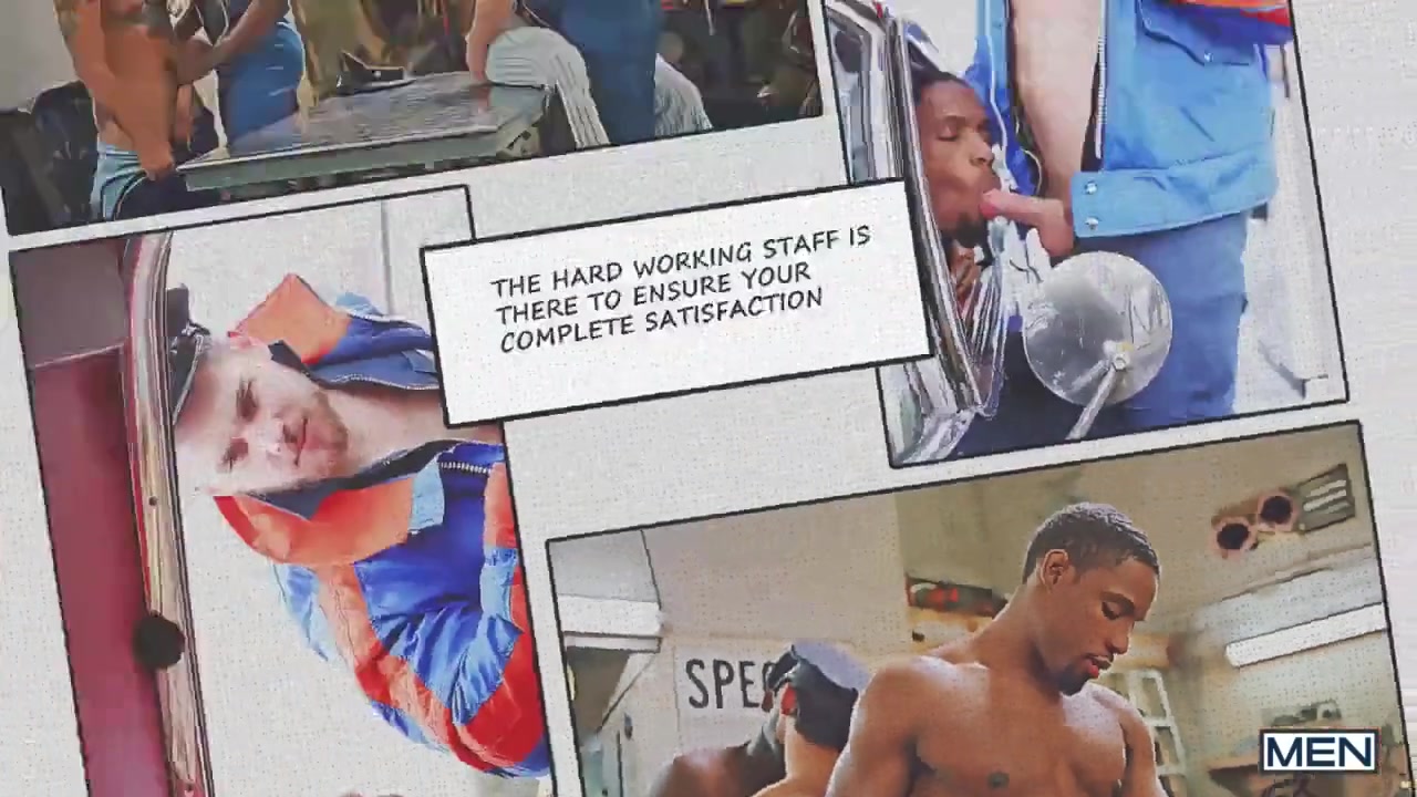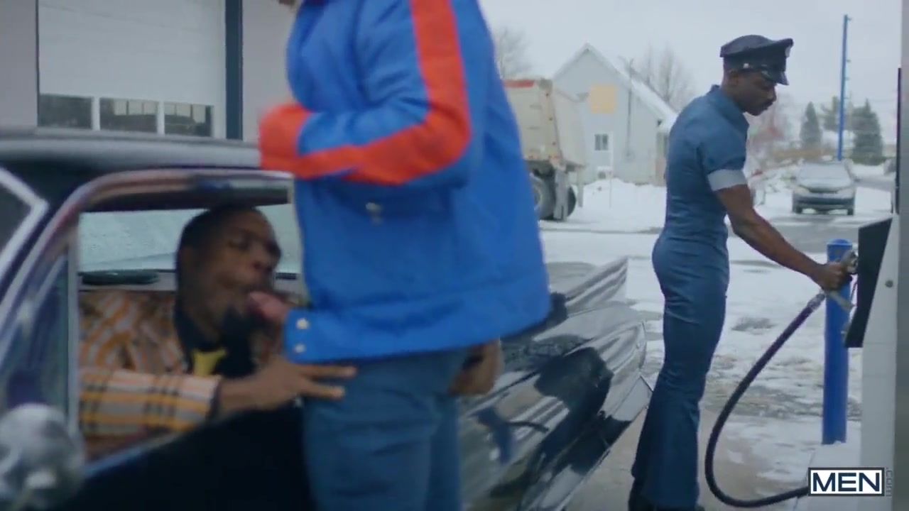 Работник заправки не удержался и взялся отсасывать черный хуй незнакомца, после чего предложил заняться групповым сексом не только с ним, но ещё и с друзьями. Уже в здании заправки ребята развлеклись как следует. Самцы вчетвером как следует пошалили. Трахались четверо чуваков, два с которых были черными.