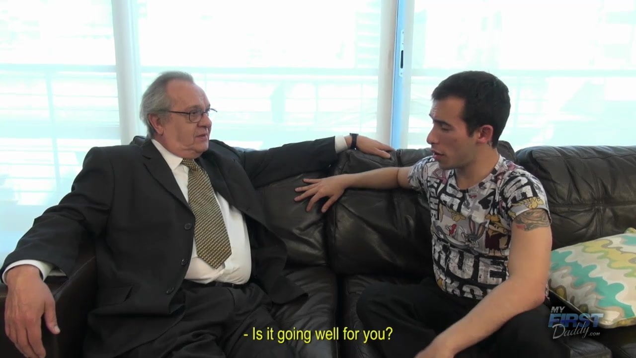 Зрелый мужик вырвался с работы пораньше и приехал к молоденькому любовнику, чтобы развлечься как следует. Чувак сделал гостю минет на диване, а потом встал раком. Старик вылизал попку спутника и взялся его трахать как следует в анальное отверстие, получая удовольствие от развратного полового акта в квартире.