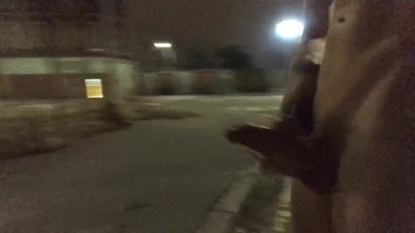 Гей дрочит член посреди ночи на улице