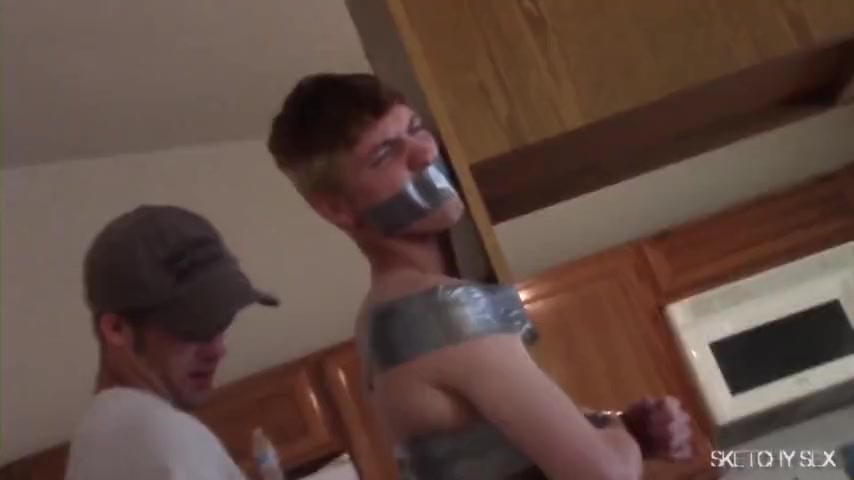 Парень ебет связанного друга при остальных