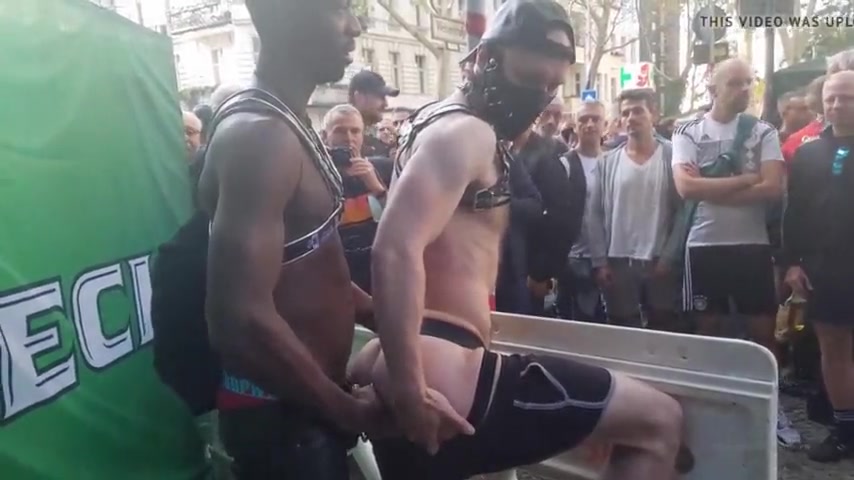 Во время уличного марша на фестивале парочка геев решила устроить чертовски грязную показуху. Благодаря этому можно увидеть, как оба половых партнера великолепно жарят друг друга в задницу. Тут практикуется не только минет и анальный секс, но и фистинг. Любой посторонний человек может подойти поближе и поглядеть, как ребята развлекаются.