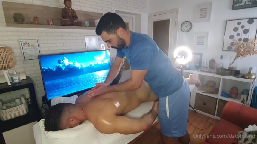 Мускулистый массажист делает массаж сексуальному клиенту-гею и внезапно возбуждается. Он предлагает опробовать на вкус свой хуй и парочка обменивается взаимным минетом. Активный партнер разогревает попку любовника анилингусом и направляет в нее ствол. Он трахает пассива в позе догги-стайл, вколачивая член как можно глубже.