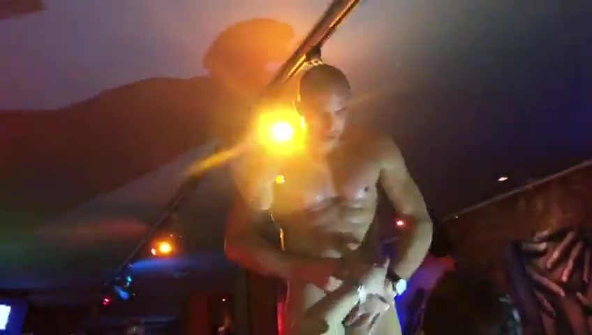 Лысый парень трахнул приятеля раком на барной стойке в баре для геев
