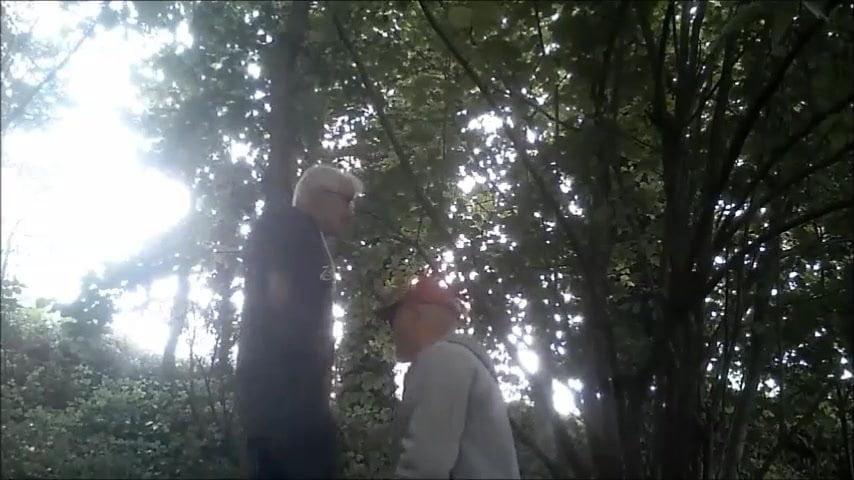 Зрелые любовники уединились в лесу ради секса. Пассивный гей встал на колени перед приятелем и сделал ему шикарный минет. Возбудив мужика, самец наклонился раком и отдался в позе догги-стайл на природе. Парочка трахается в свое удовольствие, но вскоре к ним присоединяется еще один секс-партнер, которому достается минет и хуй в жопу.
