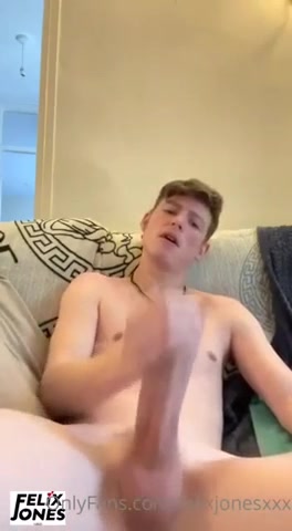 Парень дома дрочит свой большой хуй перед камерой на диване