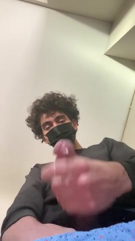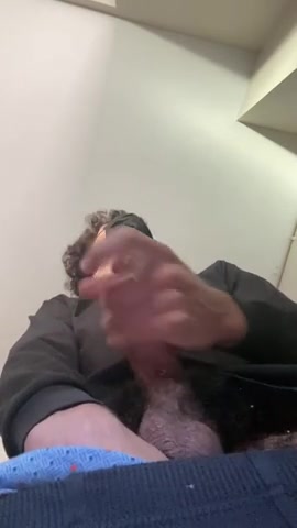 Кудрявый парень не только по-быстрому избавился от сексуального напряжения, но ещё и ролик любительский снял. Он принялся ласкать свой половой орган в общественном туалете перед камерой. Уже вскоре чувак кончил, чуть не залив спермой объектив телефоа.